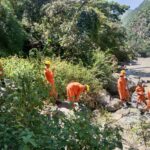 बीती 26 जुलाई की रात्रि को कर्णप्रयाग-ग्वालदम हाईवे पर नलगांव-आमसोड़ के बीच प्राकृतिक आपदा की चपेट में आकर वाहन समेत पिंडर नदी में बहे दो युवकों की खोज का काम।