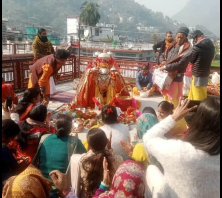 नगर क्षेत्र गौचर के वार्डों में पुष्प वर्षा से मां अनुसूया डोली का हो रहा स्वागत