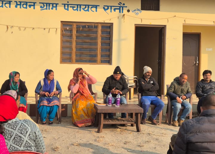 रेलवे प्रभावित रानों गांववासियों द्वारा 13 सूत्रीय मांगों को लेकर किये गये धरना प्रदर्शन और काम रोकने के बाद रेलवे लाइन निर्माण की कार्यदाई संस्था कम्पनीयों के अधिकारी व कर्मचारी गांव वालों से वार्ता करने के लिऐ गांव पहुंचे।